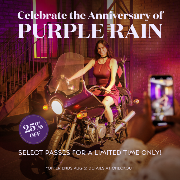 Created by Superfly and The Prince Estate, The Experience is an interactive celebration of the iconic Artist’s life and legacy. Lose yourself on an interactive trip through the music and life of Prince. Journey through 10 multidimensional spaces and explore a purple universe where you will pose atop his motorcycle from Purple Rain, operate the mixing board in Prince's studio, get down to an audiovisual dance party, and much more! Prince: The Immersive Experience is a celebration of this once-in-a-generation musical genius. You’ll leave entertained, educated, and inspired by his dedication to his craft and his incomparable cultural legacy.